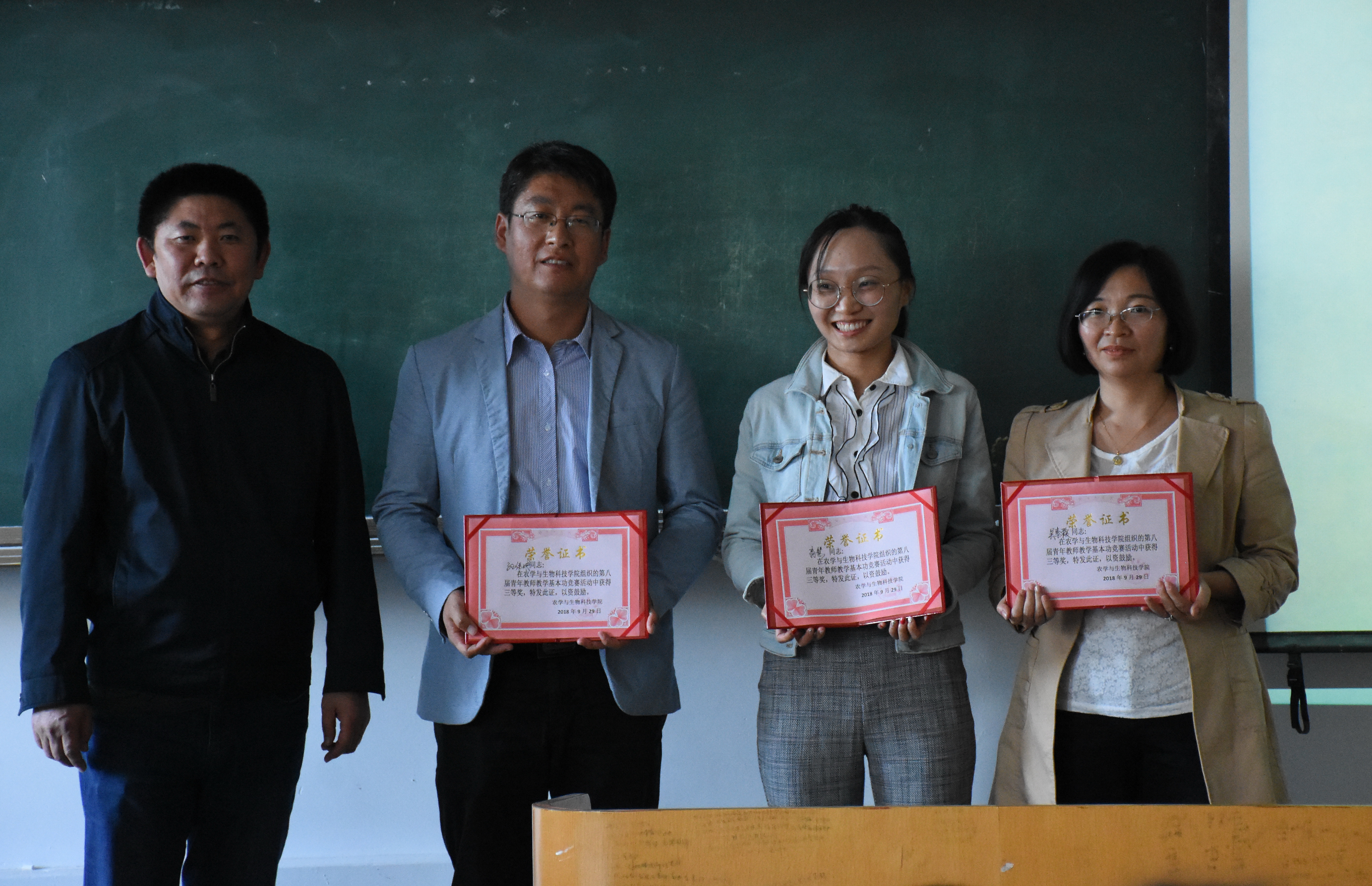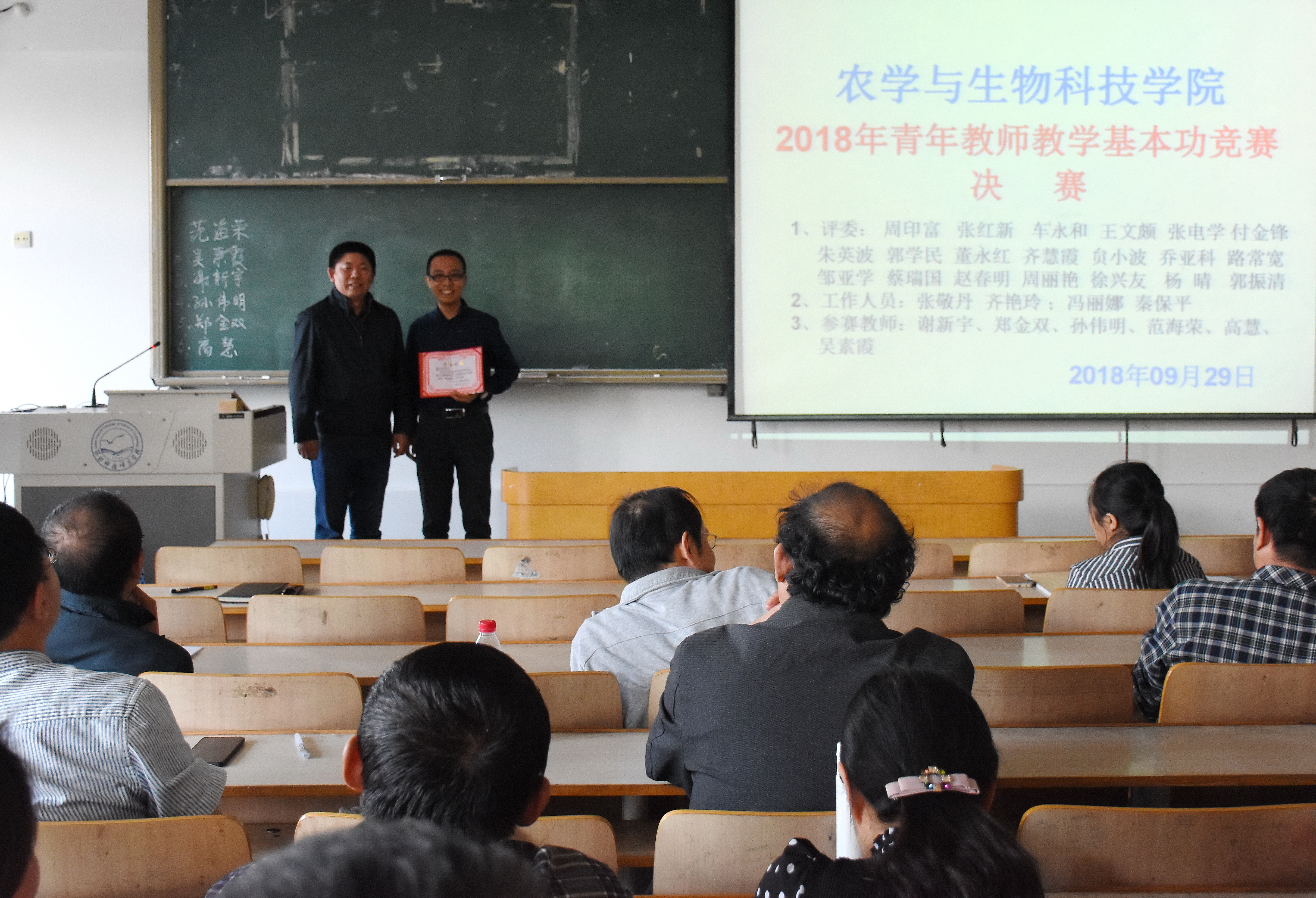 公司工会主席宣读了比赛结果,大赛共评选出1等奖1名,资源与环境教学部谢新宇;二等奖2名,植物生产教学部郑金双、资源与环境教学部范海荣;三等奖3名,生物科学教学部高慧、孙伟明、资源与环境教学部吴素霞