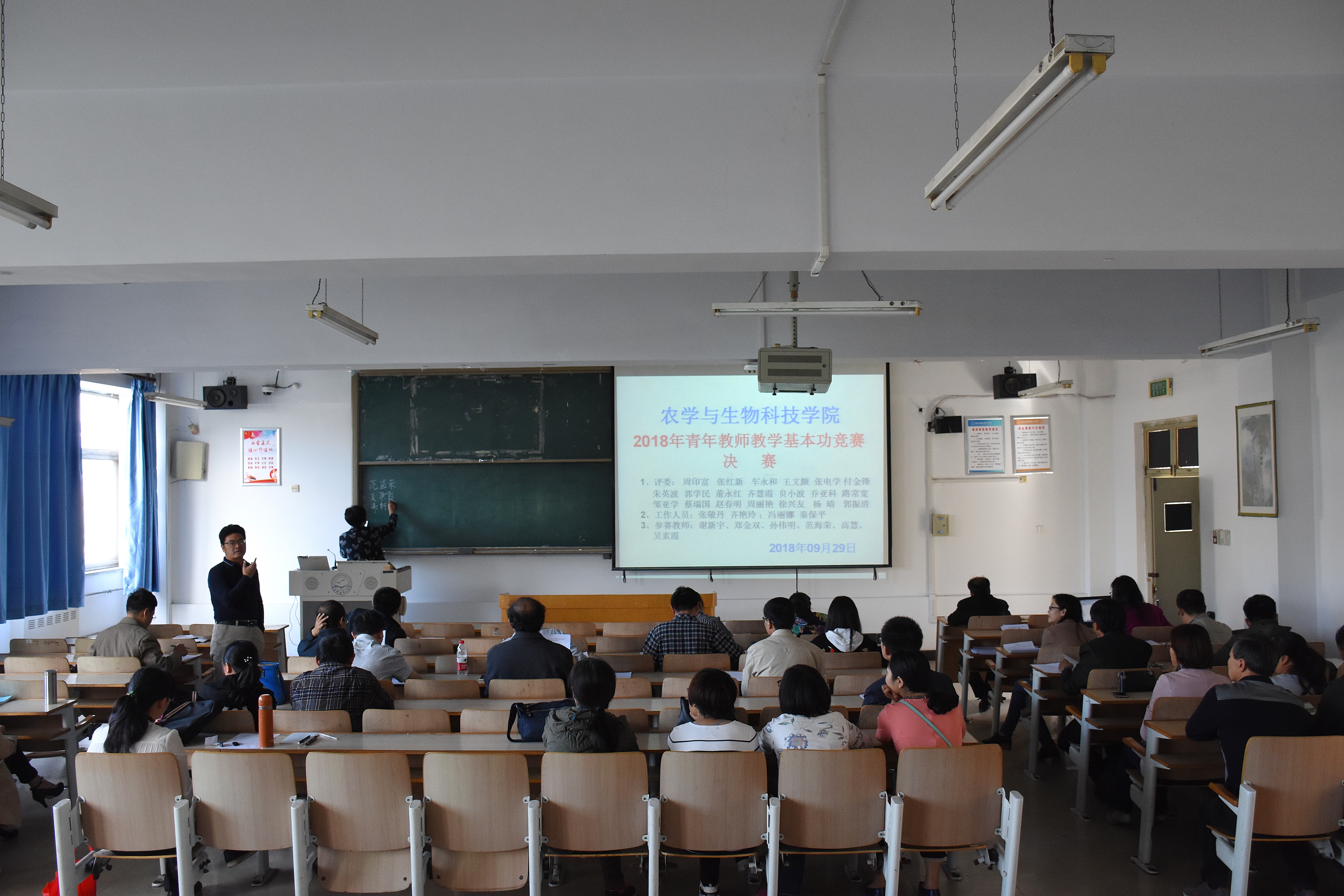 2018年9月27日和29日,申博sunbet工会连续组织开展了青年教师教学基本功竞赛活动,全院19名青年教师全部参加,全体教师全程进行了学习观摩。