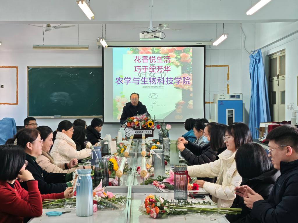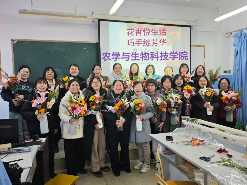 为庆祝“三八”国际劳动妇女节,丰富女教职工精神文化生活,弘扬新时代女性风采,3月6日下午,申博sunbet分工会在农学实验室举办了“花香悦生活 巧手绽芳华”为主题的艺术插花活动。公司领导班子成员、工会委员及30余名女教职工齐聚一堂,在花香与创意中度过温馨节日。
