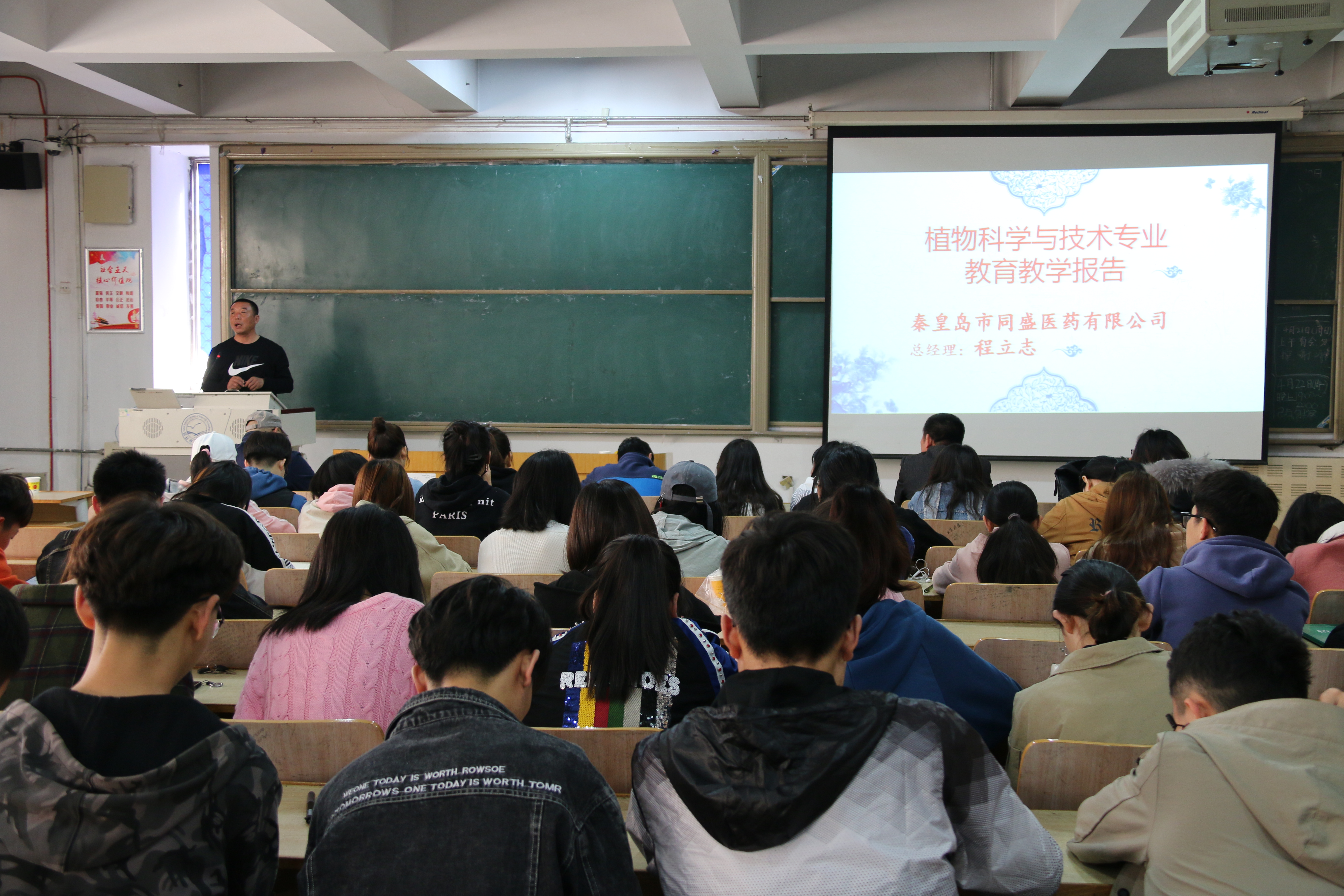 2019年4月21日,申博sunbet邀请秦皇岛市同盛医药有限公司总经理程立志来公司作题为“中药材发展与人才能力需求”的公司产品报告,植物科学与技术专业、植保专业200余名员工听取了报告。
