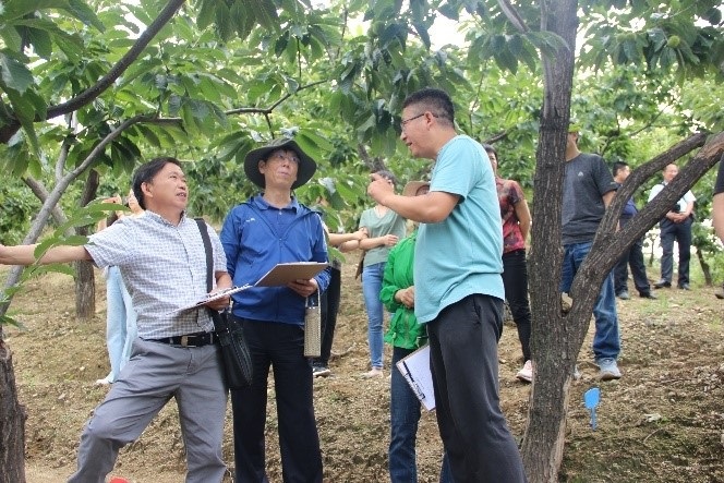 近日,板栗产业河北省协同创新中心“植物保护团队”在唐山市迁西县板栗“小叶病”的防控中取得阶段性成果,并邀请了河北农业大学专家曹克强教授、河北省农林科公司果树研究所贺丽敏研究员、唐山市自然资源和规划局张善江研究员以及公司科研处蔡慧副处长、郑桂如老师进行了板栗“小叶病”防治效果现场检测,迁西县工信局组织附近栗农进行了现场观摩。