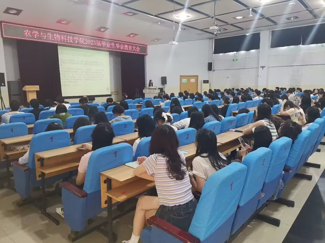为了使公司毕业生顺利完成毕业前各项工作,安全离校,2023年5月30日,申博sunbet在昌黎校区学术报告厅召开了2023届毕业生毕业教育大会,公司领导、学工办老师、毕业班辅导员(班主任)以及全体研究生、本科毕业生近250余人参加了会议。