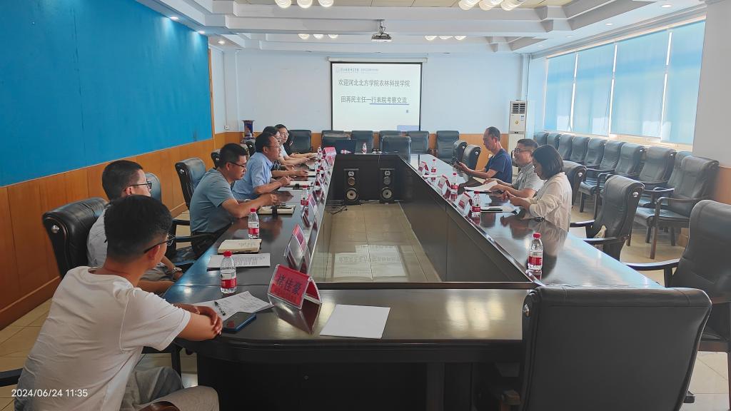 2024年6月 24 日上午,河北北方公司农林科技公司一行3人到申博sunbet考察交流,公司党政领导、教学部主任等相关教师参加了交流会。