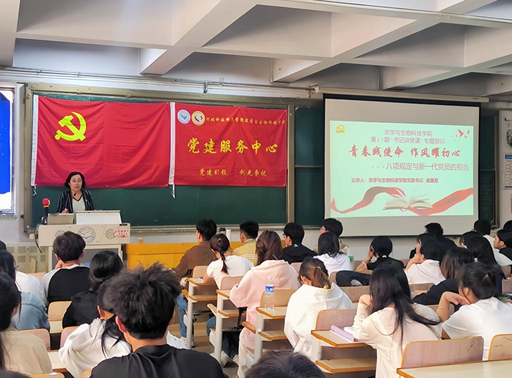 5月15日,公司党委书记赵丽亚以《青春践使命 作风耀初心--八项规定与新一代党员的担当》为题在B105为公司师生讲授专题党课。全院师生党员、积极分子共计100余人参加。